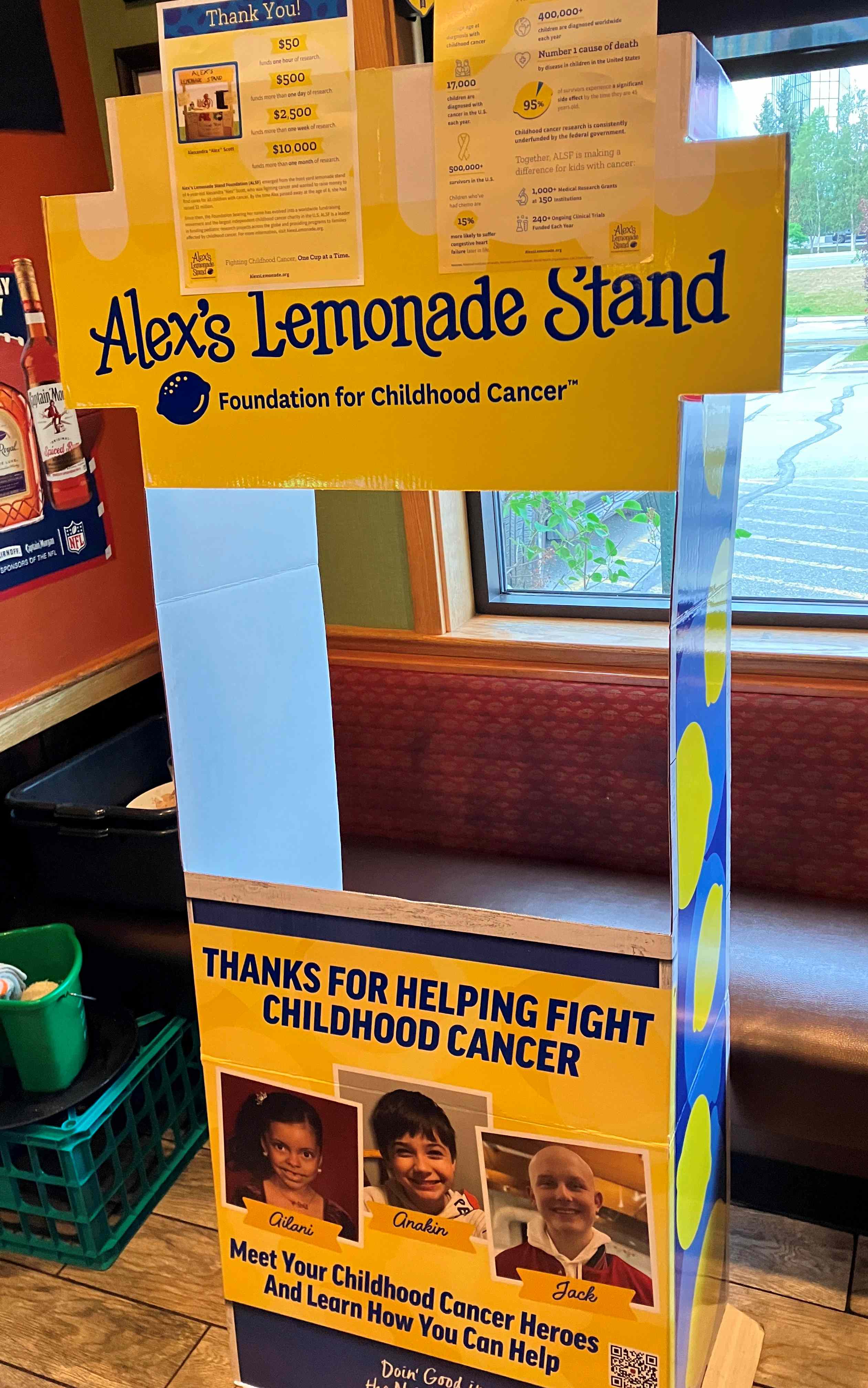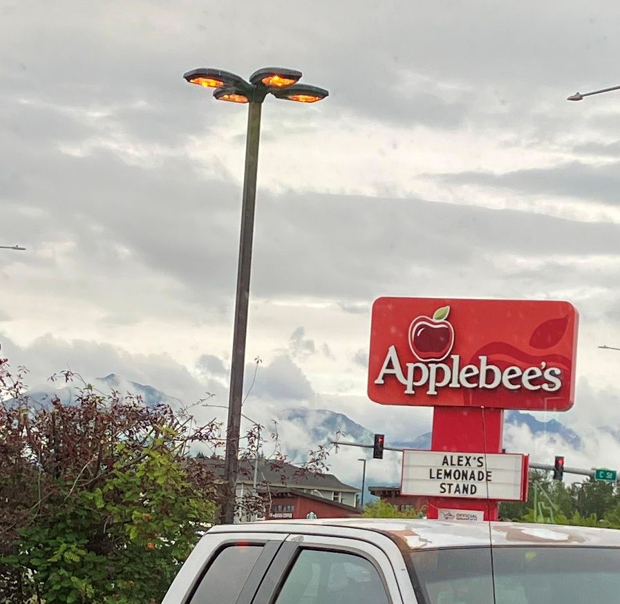 Our next GPS stop was our 'apartment', a bargain on Expedia. The bargain was an immediate headache because we couldn't figure out how to enter the code that was provided to unlock the door. The manager at a remote location offered to open the door and leave video instructions for us when we returned from Mass. We must have said the right prayers, since the video gave us the details we needed. Now we could celebrate with some real food from a local Applebee's. As we enjoyed ribs, fries, a salad, and a Blue Moon beer, we looked at the Applebee's sign that featured something about "Alex's Lemonade Stand". It was a great connection with our grandson Alex and the rest of our family back in the lower 48.