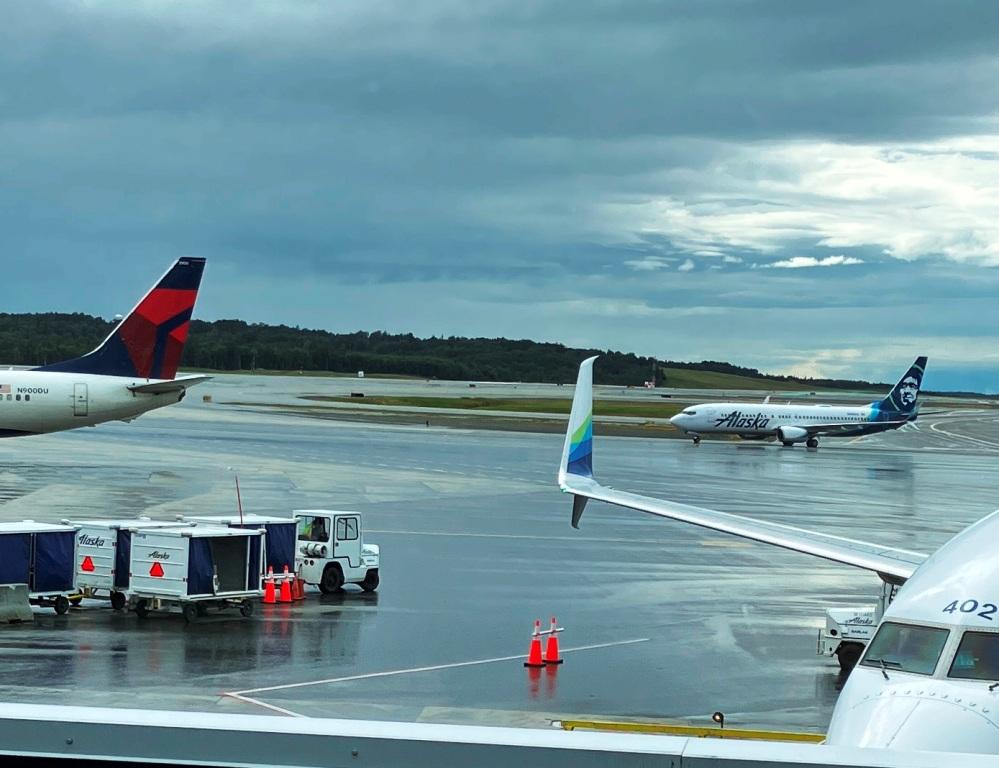 We had time for one last tourist stop before catching our Alaska Airlines flight to Sacramento. An Anchorage native recommended the Anchorage Museum. The ticket clerk recommended the second floor if we were in a hurry. There we found rows of artifacts displayed in towering glass cases sorted by regions of Alaska. Dramatic lighting was dim and challenging, but the contents were of the best quality, containing the typical clothing, tools, household items from each region.