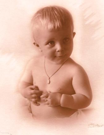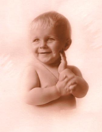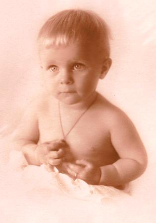 But soon the fun and games and prosperous time would end. Grandpa's dreams of more riches blew up with the stock market crash in 1929. He had bought stock on margin. Now his stock market losses would be devastating. The Van Nuys home lost to the Great Depression, the Scherer family moved back to Long Beach. Then the gloom was temporarily dispelled on September 24, 1930, when Grandma and Grandpa had a bouncing, blonde, baby boy, James William Scherer.