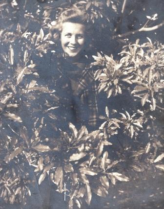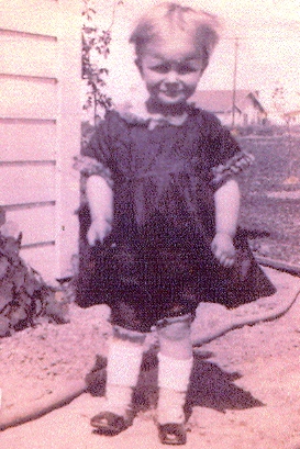 In 1928 the prosperous Scherer family moved to Van Nuys. Their home was next door to the Catholic Church where Mom played with a neighborhood family. The oldest boy would pretend to be a priest. The other children would receive a cracker piece on their tongues as if they were receiving the Eucharist. Mom didn't understand until later that they were playing Mass. She also recalled her earliest religious experience: "The church where I first met God was on Garvey Blvd, a log cabin. I learned the Our Father there, standing at the back of the congregation. And of course you know that I took all the quarters out of the till [from the butcher shop] each Sunday to buy bricks for the new church."