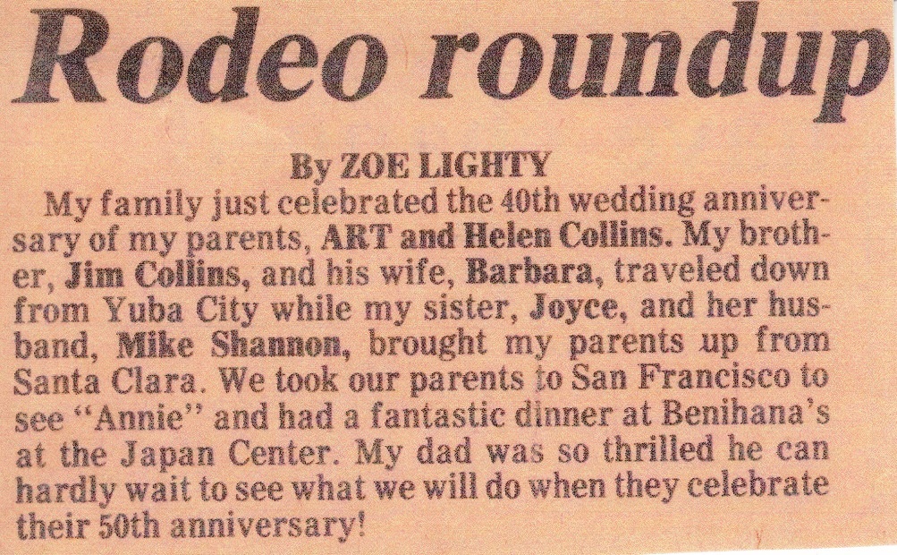 After serving for three years as a teaching brother, I took a librarian’s job at Wheatland High School and prayed to meet the right girl. The Good Lord soon brought Barbara LaPlante and me together for a second wedding celebration for the Collins family.