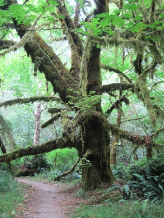 Pictures don't show how tall the trees are, although in the picture above on the right you can see Barbara at the base of the trees. Several of the tallest redwood trees in the world are in this grove. The pictures also don't tell about the four mile round trip up and down a ravine to see these majestic redwoods. Our hike also featured views of banana slugs and weird looking mossy trees.