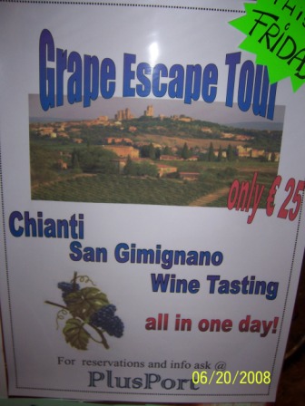 The nice rooms at the Plus Hostel in Florence The promo for the wine tasting tour I went on