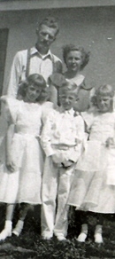 Mom had her hands full in our new house in Fresno surrounded by dirt. After getting settled, Mom and Dad helped me prepare for my First Communion.We quickly became involved in our new parish, Our Lady of Victory. Dad helped build the new school. His roofing experience came in handy. Mom helped in the rectory office. The Sisters of St. Joseph helped us through our grammar school years.