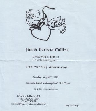 We had a great time recalling our wedding 25 years ago. We didn't look the same 25 years later, but we had six children and many friends to celebrate all those years in our Yuba City home: