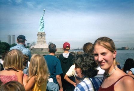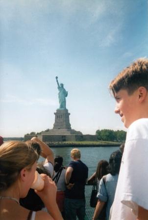 We managed to snap a picture of each of us with the Statue of Liberty behind us.