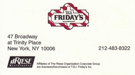 Our last dinner in New York City was at TGI Friday's across the street from the Twin Towers. We had seen the skyline from the Empire State Building, so we decided not to spend the time and money to see it again from the top of the Twin Towers. We didn't realize that in about four years the Towers would be gone. They didn't exist when I graduated from college and flew from New York to California, so I hadn't seen them until we visited New York in 1997 (they were completed in 1973). We enjoyed our dinner at TGI Fridays oblivious of the the tragedy to come. Our prayers go out to the survivors of that tragic 9/11 day.