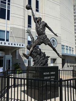 After taking a few photos of Notre Dame, we jumped in the Saturn for our next adventure, a visit to Maggie's favorite spot in Chicago, the statue of Michael Jordan at the United Center.