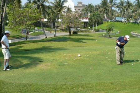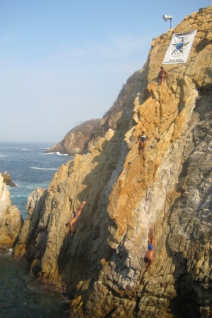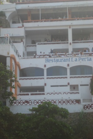 Here we are on the hotel's patio near the restaurant where tourists watch the divers.