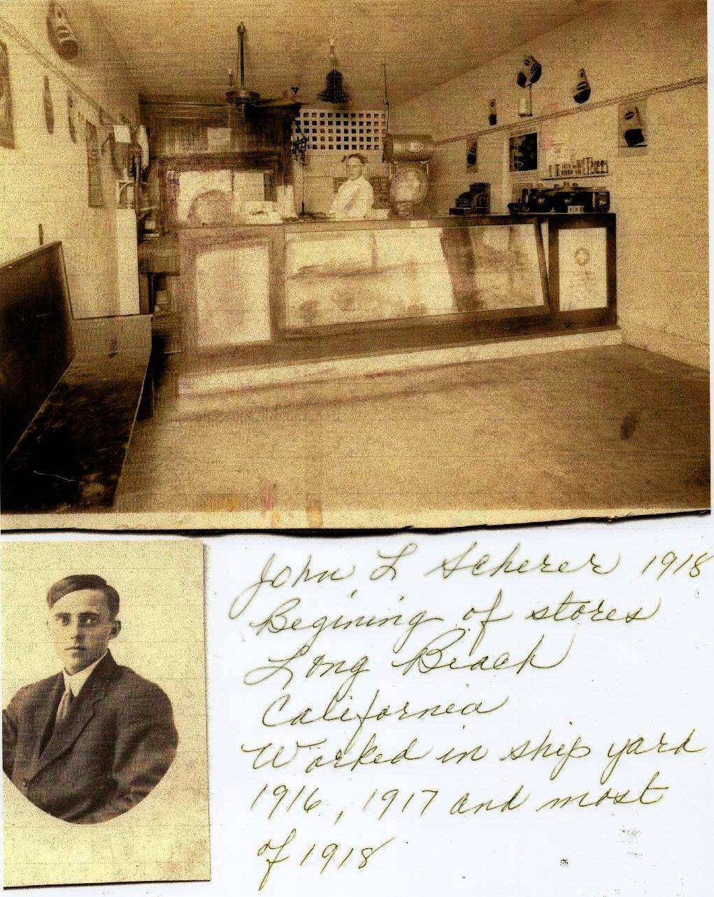 John and Nellie quickly put the rough journey behind them as they fed the birds and waded through the waves in Long Beach. Mom recalled: "My Mother loved the ocean but not like my Dad. He would go past the breakers with a straw hat on and swim back and forth, amazing to watch." John found work in the ship yards then opened the Arcade Meat Market on West Broadway.