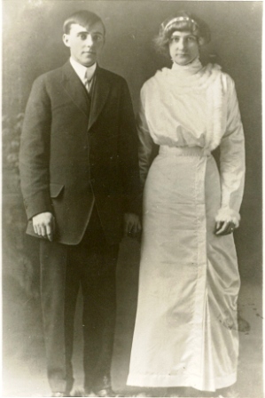 John Scherer used to sneak out of town to dance because dancing was considered scandalous. One weekend he met a great dancer, Nellie Redinger, from across the border in Missouri. Mom retells their story: "The Redingers were Protestants of their own making, very strict on what young folks could do. Most of those from Iowa were Presbyterians. Nellie's sister, Pearl, played the organ in the Chapel in Ridgeway, Missouri. John's cousin's (Deyo) wife Erma played the organ at church for 50 years (Afton, Iowa). So the young people went across to Iowa to Mt. Ayr for dancing. A big no, no. That could be where Nellie met John and Blanche and Clarence. They talked about having lots of fun dancing there. And in Long Beach went to a big dance each Saturday night." [Deyo took his wife, Erma, to Long Beach on their honeymoon in 1919 and joined John and Nellie at the dances in Long Beach.] They loved dancing together and dreaming up adventures. Soon they decided to be married, so they planned a Christmas wedding on John’s 21st birthday, December 25, 1913. Nellie’s brother, Frank, the Presbyterian preacher, presided. Read more details form Helen's notes from this period.