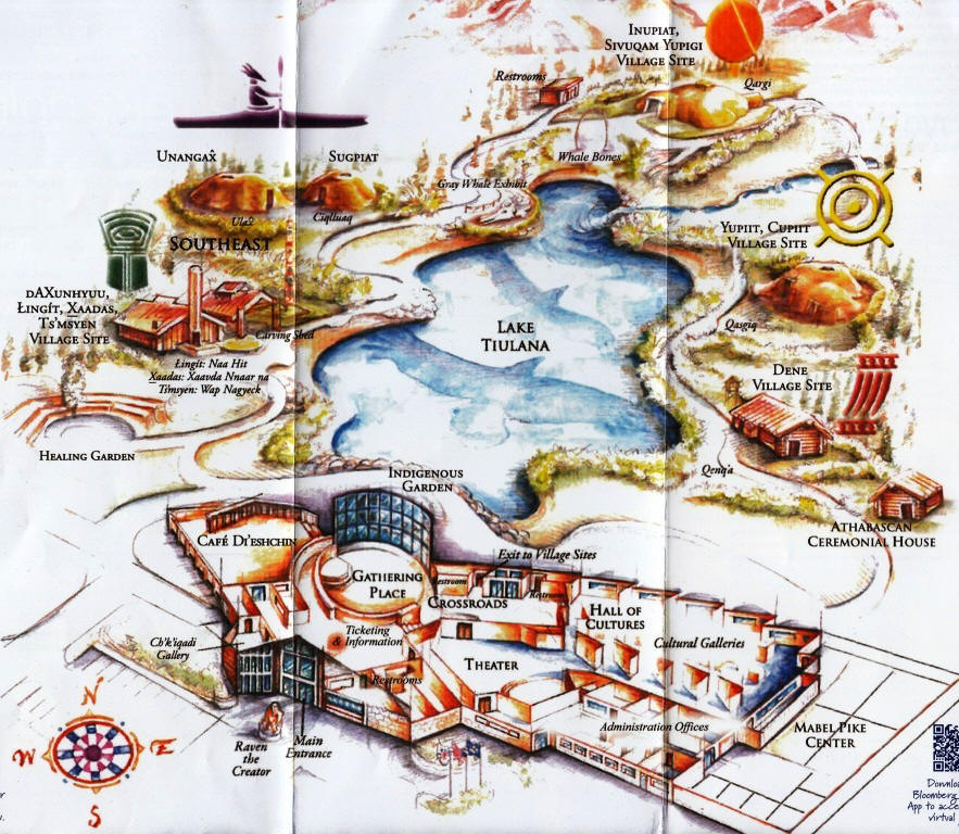 Afterwards, we toured the Hall of Cultures, then wandered around a lake that featured houses and village sites representing eleven major Alaskan cultural groups.