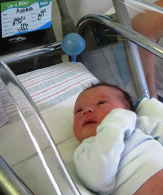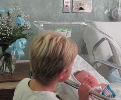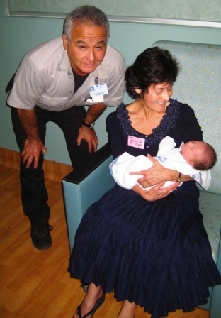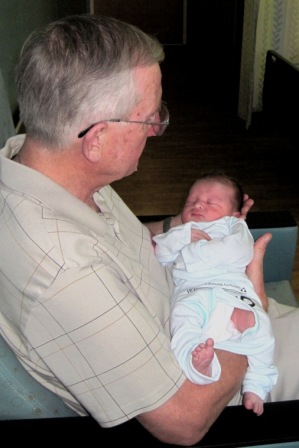 But late in the evening of October 11 Ellen went to the hospital.The waiting began. The midwife predicted a few hours until delivery, but Alexander wanted to arrive early the next morning. Soon after his first cry, the anxious grandfathers joined Ellen, Alexander and Arnie:
