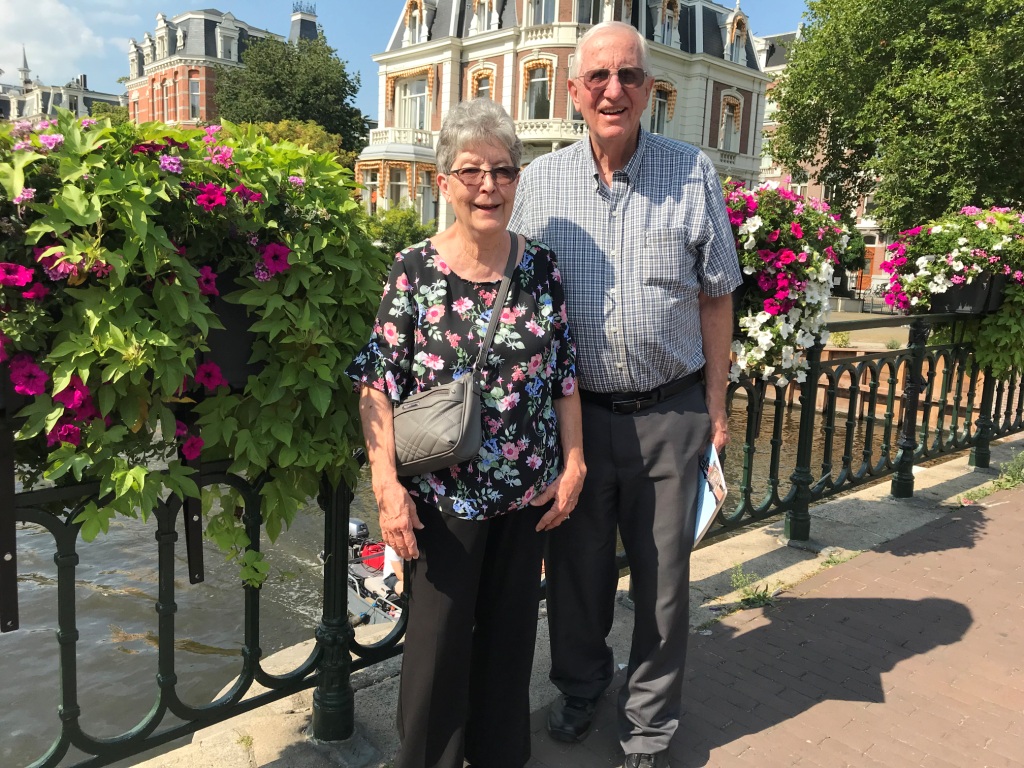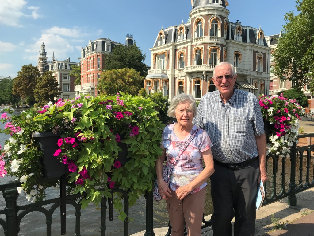 The planned transfer to our cruise ship was delayed because of low water levels on the Rhine because of drought conditions. We would be spending another night at the Movenpick Hotel after a full day in Amsterdam. Our first focus was to attend a Catholic Mass in Amsterdam. Bev joined Barbara and me as we found a taxi to take us to the address of the Catholic Church I had researched. I paid the driver then we walked to the church he had pointed out. The church towers were immense, some of the tallest in Amsterdam. We entered the church only to discover that this was the Westerkerk Church, one of the first protestant churches built after the protestant revolt. It was historical, the burial place of Rembrandt, but not the right church: