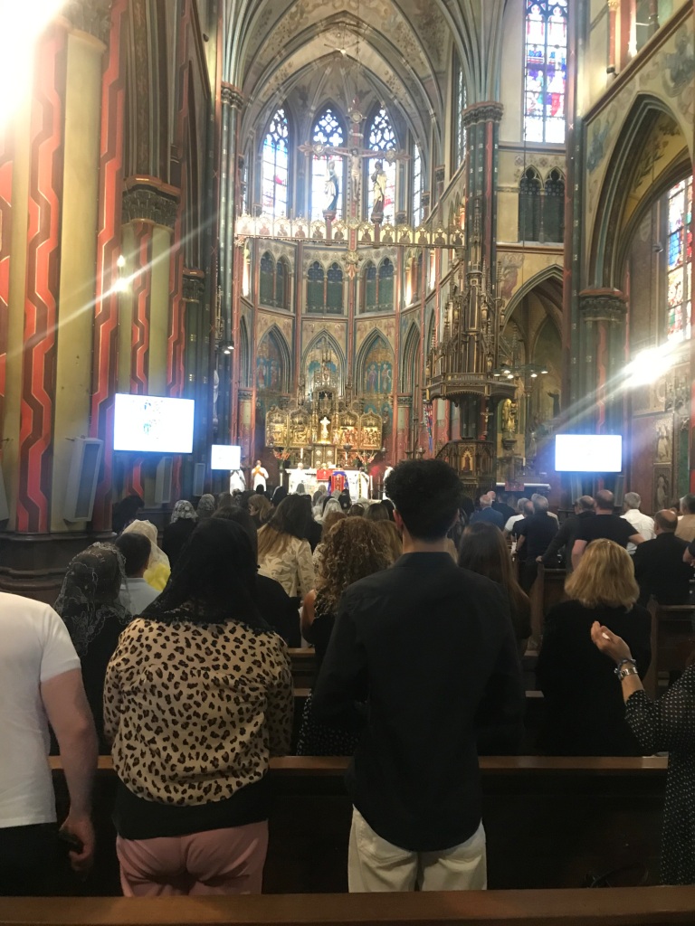 Next, our iPhones directed us to the nearby Church of Our Lady. We were just in time for Mass, but we didn't understand the language. It turned out that this was a Syriac Orthodox church used both by the Syriac Orthodox community and the Roman Catholics of Opus Dei, a beautiful church but not Roman Catholic: