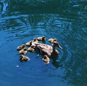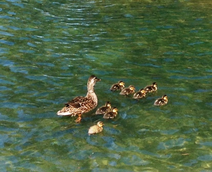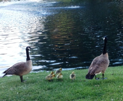 Later in April, the new ducklings and goslings headed for the Campus Commons pond: