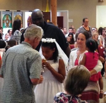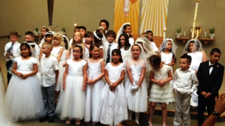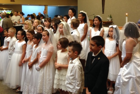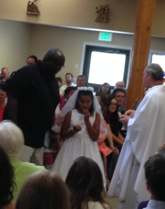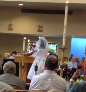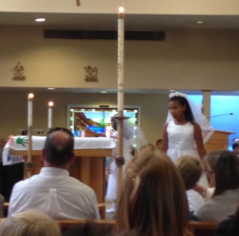 On the last Sunday in April we joined the Nelms family for Jada's First Communion in Chico. Jada and her classmate helped decorate the altar...
