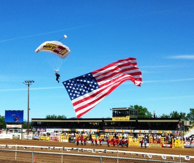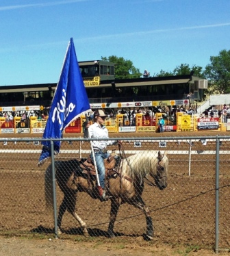 The rodeo started off with a parachute landing, flag salute, and parade...