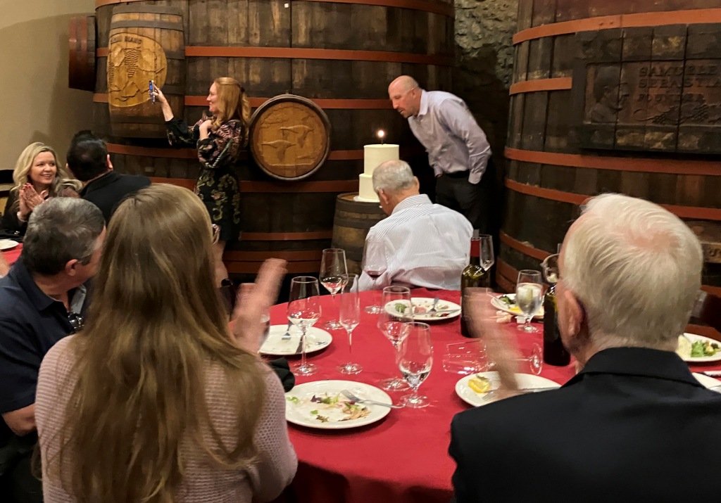 As soon as we arrived at the Sebastiani Winery in Sonoma, we were served champagne to begin the party. Then everyone gathered inside for dinner and birthday cake.