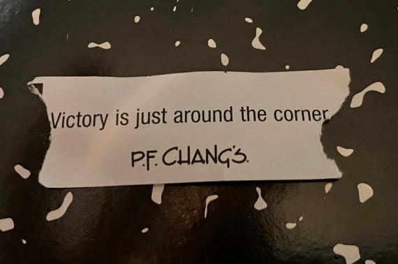Before the surgery, we attended Mass and prayed at Our Lady of Mt. Carmel Church. In the evening we went to dinner at P. F. Chang's. We were encouraged by the fortune cookie message below: