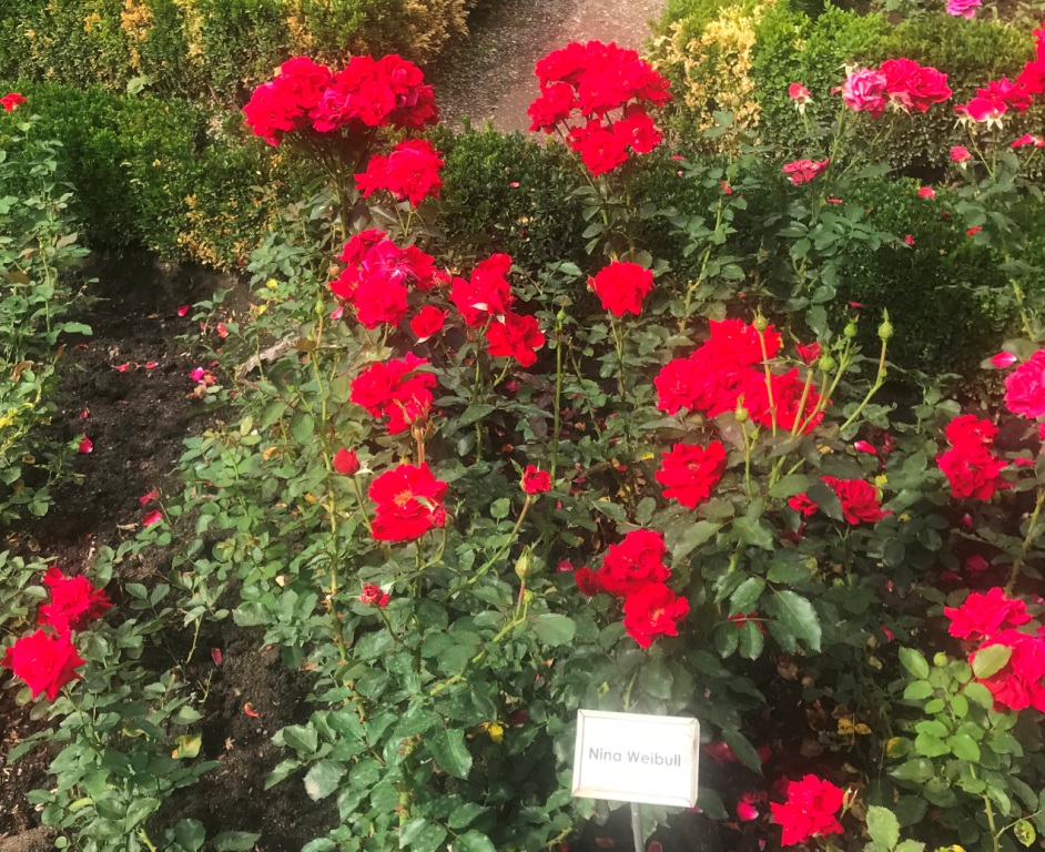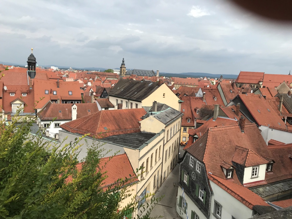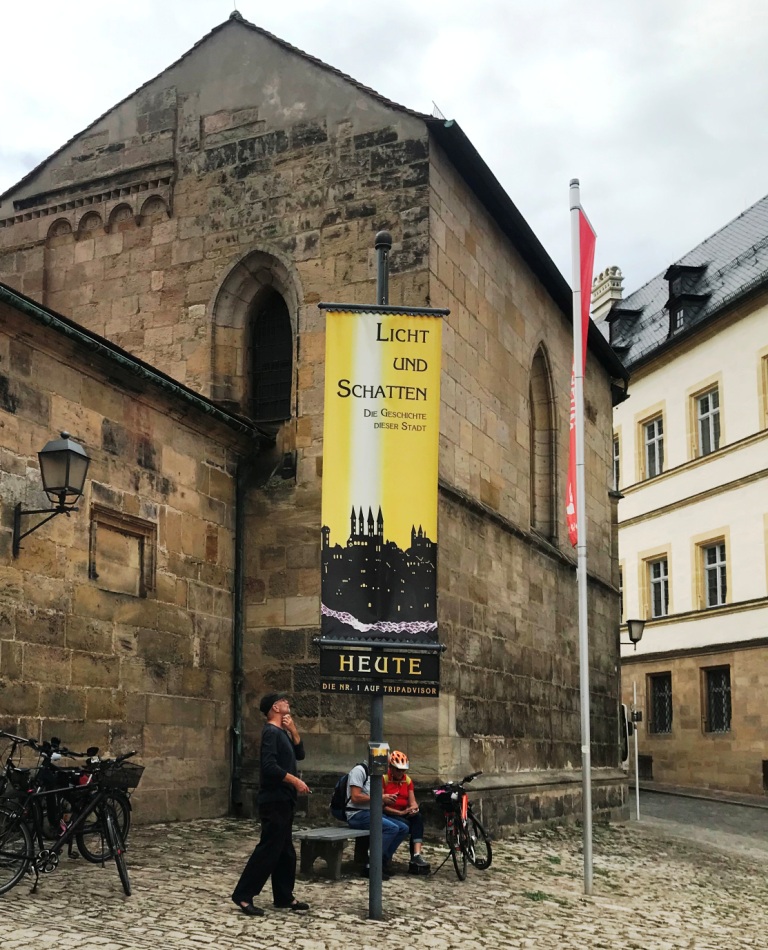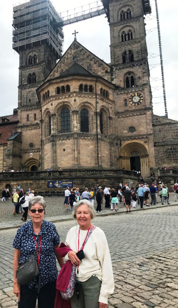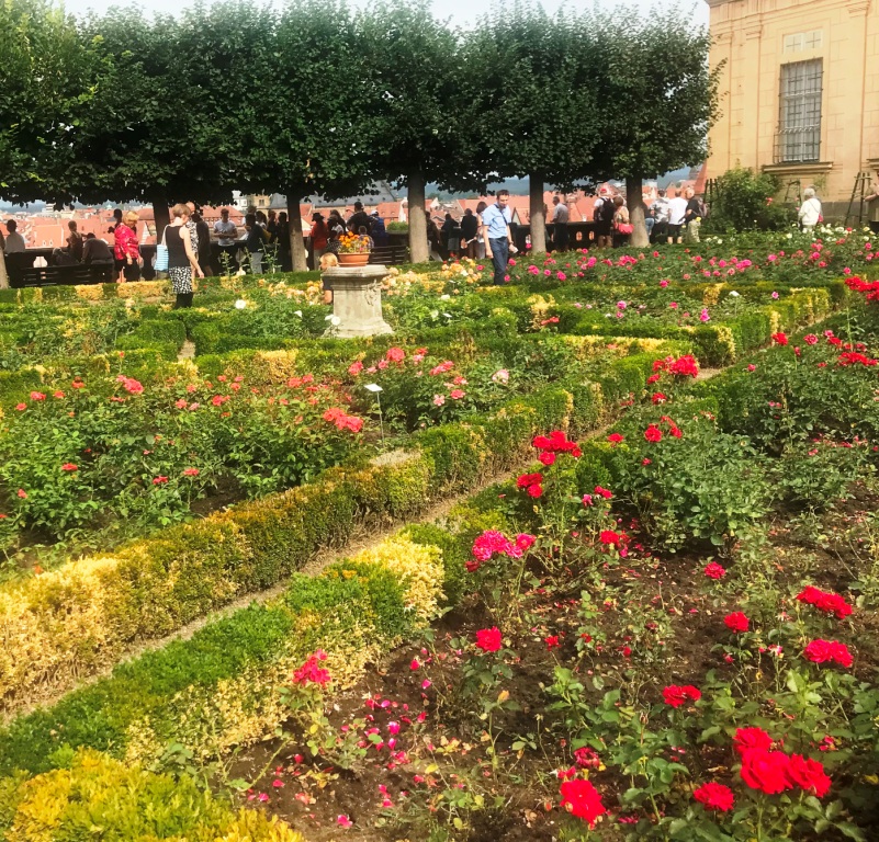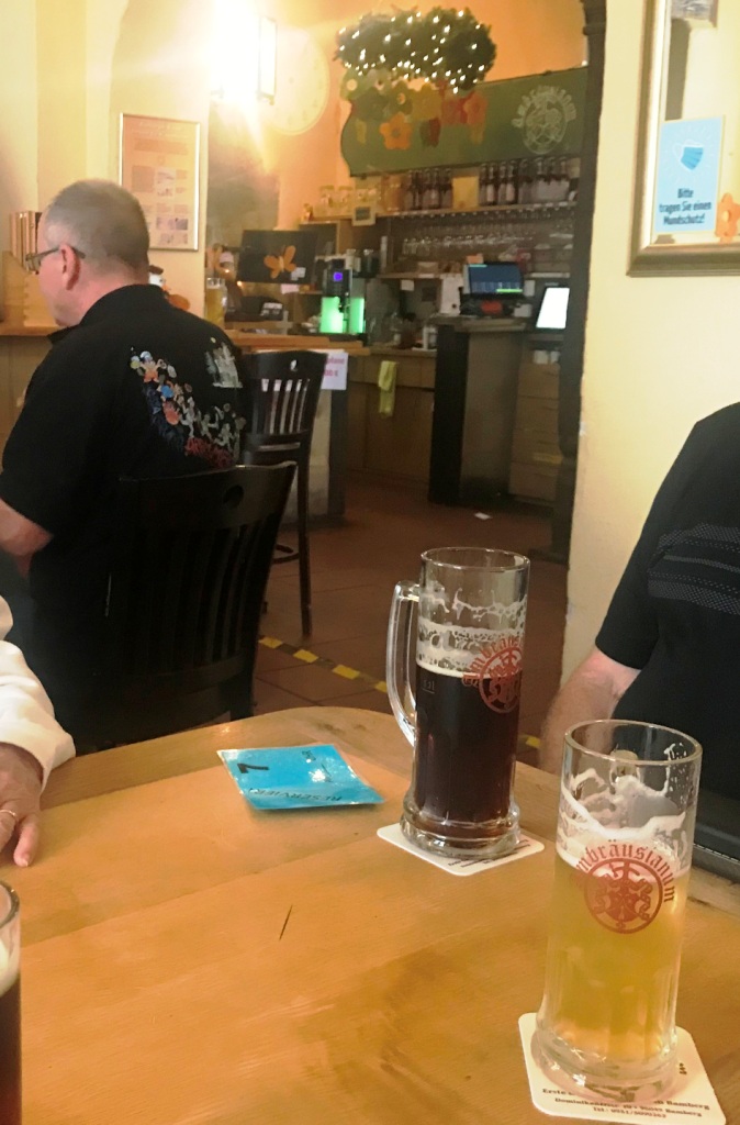 Bill and I sampled the famous smoke-flavored beer with a few sausages, sauerkraut, and local bread at a local beerhouse before getting back on the bus. A group of rose garden tour guides sat directly behind us.