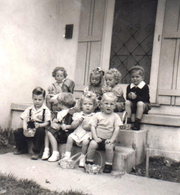 Easter 1947: Zoe and Joyce back row with curls; Jim front row right