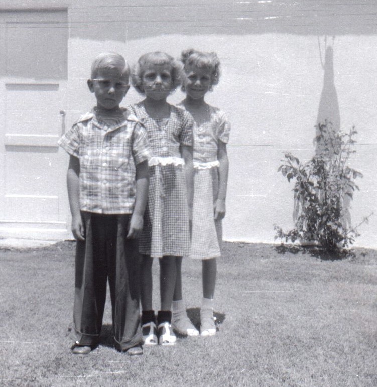 When I posed with Joyce and Zoe in late 1951, we didn't look too happy to be leaving Bellflower. We would miss our friends and parties. I would miss running around the neighborhood in my wagon, chasing the ice truck, the Good Humor ice cream truck, or waiting for the milkman to arrive, helping Mom put on parties, going to visit Grandma and Grandpa most Sundays. A new school, church, and neighborhood awaited us in Fresno. I figured it would be okay.