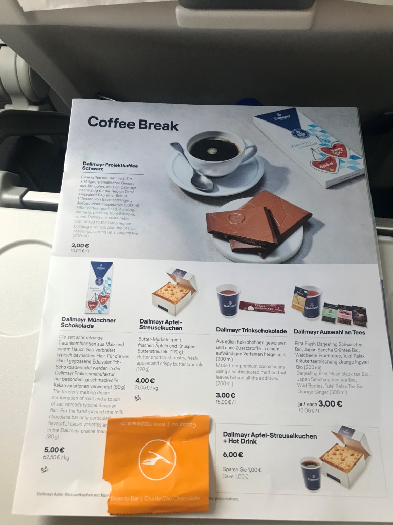 The meals, chocolates, and beer helped us endure a 10 hour flight. Guides we picked up in the cities gave us something to read.