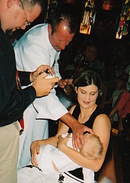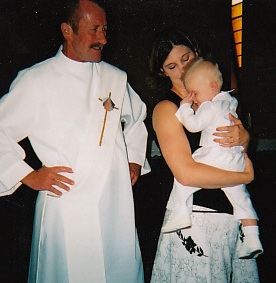 A few months later we joined Jason and Maggie for Carson's baptism. Ellen and Arnie volunteered to be his Godparents. Our Deacon friend, Eldon Vignery, performed the Baptism while we prayed, took pictures, and celebrated: