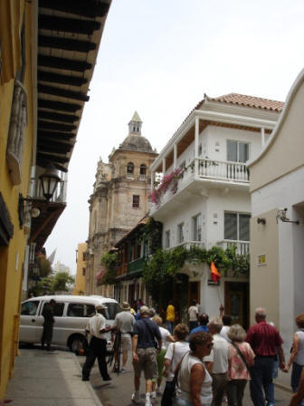 Once visited by Columbus, it quickly became a center for collecting gold to send back to Spain. This attracted pirates who wanted to steal the gold. Later it became involved in the slave trade. St. Peter Claver tried to help the slaves. The cathedral in the picture above is named in his honor.