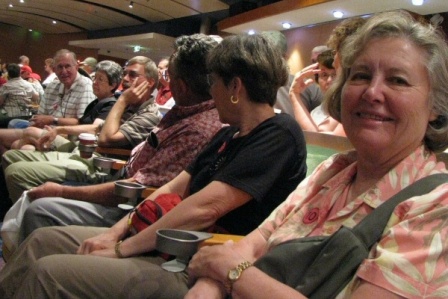 We joined in the daily trivia contest. Later, we found comfortable seats for the evening show.