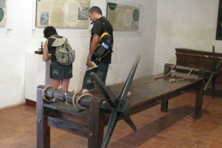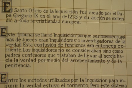A highlight of the tour was a trip to the local office of the Inquisition. We viewed the instruments of torture and read the explanations above.