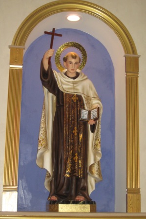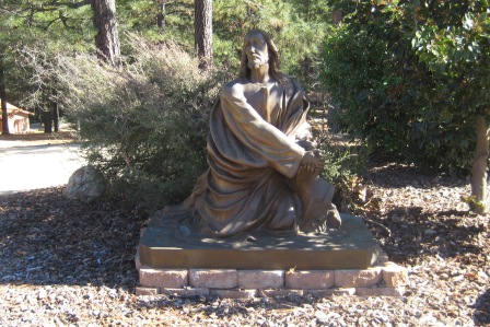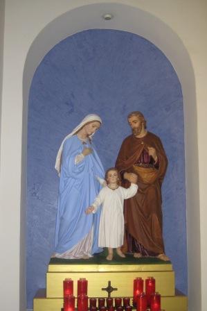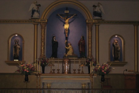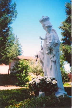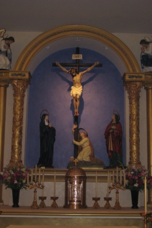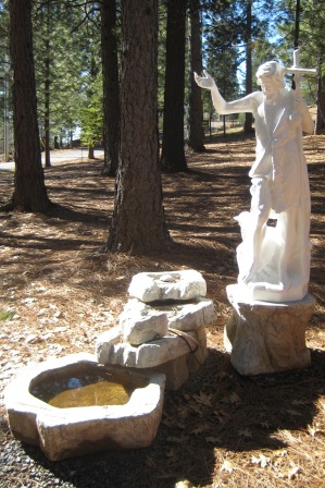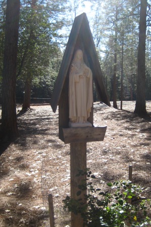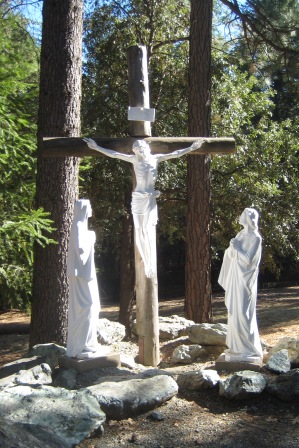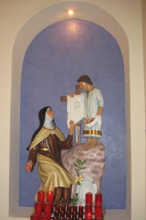 ...with a wayside statue of St. Therese, a Crucifixion scene, and a statue of St. John the Baptist nearby...
