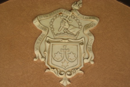 ...where the Carmelite coat of arms and the chapel's cornerstone welcome visitors...
