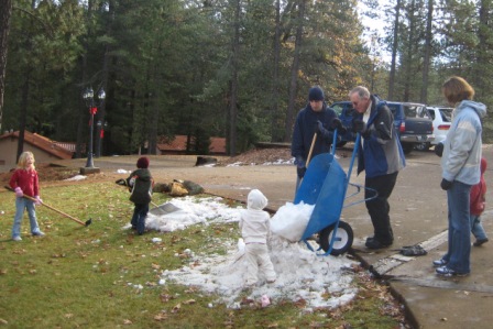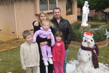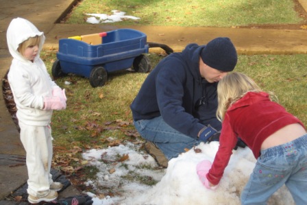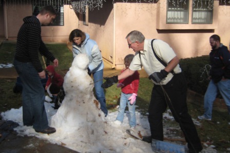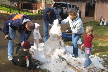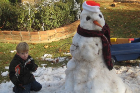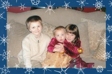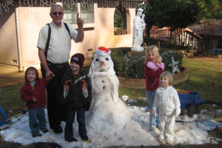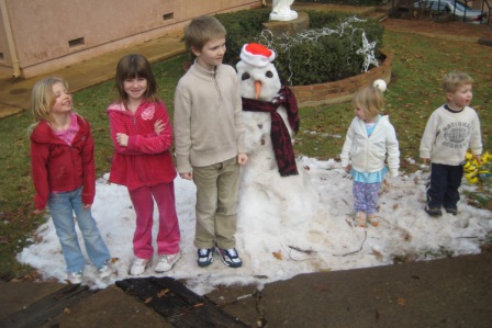 ...then the cousins gathered around the snowman for a final picture before opening presents...
