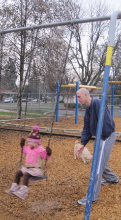 Steve won the raffle prize for book fair credits, an early Christmas present for Wyatt and Helena. All this singing put us into the mood for Christmas Eve a few days later at the Collins family home in Chico. It was a great celebration with more singing and presents. Santa Claus even showed up.