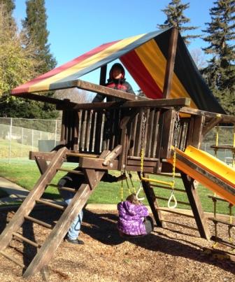 We took pictures at the clubhouse and made a final visit to the playground: