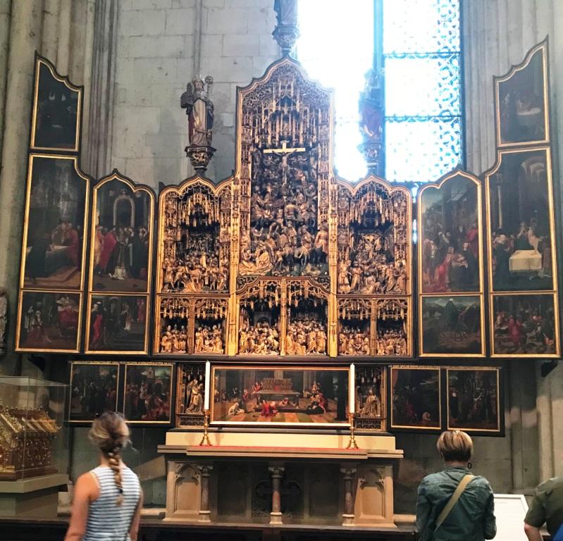 The day started with a jolt when Barbara and I overslept. We threw some clothes on, grabbed some breakfast rolls, and joined our tour guide, Peter. He introduced himself as a Cologne native. His grandmother had survived the World War II bombing when most of Cologne was destroyed except the cathedral. His grandfather survived the war in France as a prisoner of war and joined many others returning to Cologne. They welcomed the sight of the Cathedral's spires in the distance then realized that hardly anything else remained.