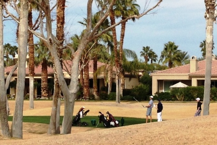 Milan and I watched Junior PGA players tee off on the par three 17th in their backyard.