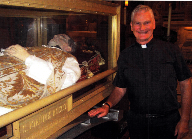 In the evening before the 5:00 Jubilee Celebration Mass, I caught up with my classmate, Pastor Fr. John Itzaina. He was happy to pose with Don Bosco’s relics.