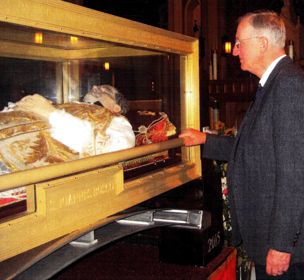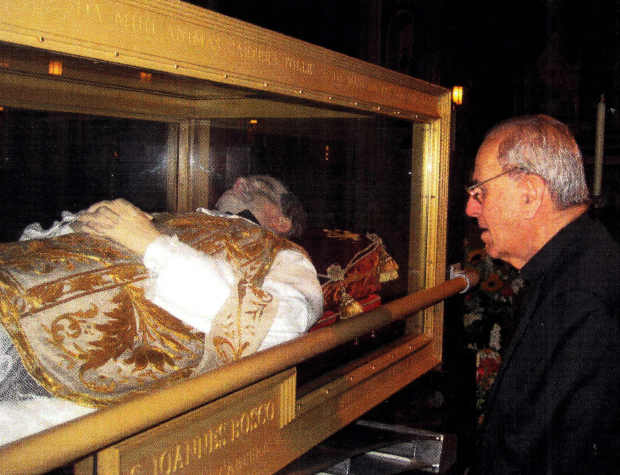 A while later, Dave Lorentz, his wife, Kathy, and a nun joined us in the veneration. I had invited local Don Bosco College alumni to be sure that Don Bosco had company from 6:00 to 7:00 in the morning. Soon Gabe Crotti and his wife, Patti, also joined us. We agreed to stay for the 7:30 Mass and to have breakfast together later.