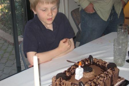 Chocolate cake, ice cream, and birthday presents
