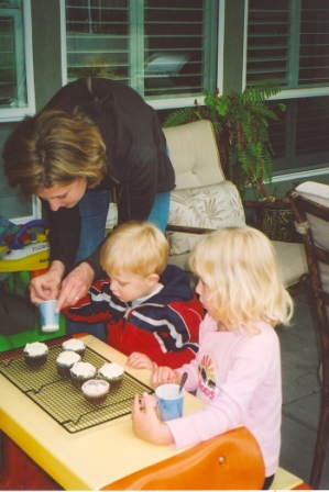 Cupcakes for Daddy's Birthday Party; Daddy & Victoria; with Aunt Rachel
