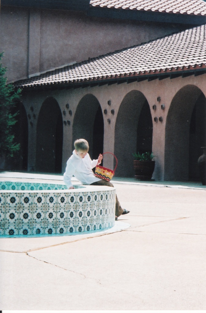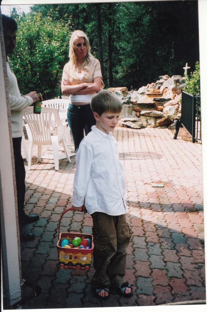 Austin's Easter Picture; Decorating cupcakes in Chico...