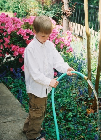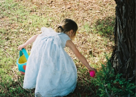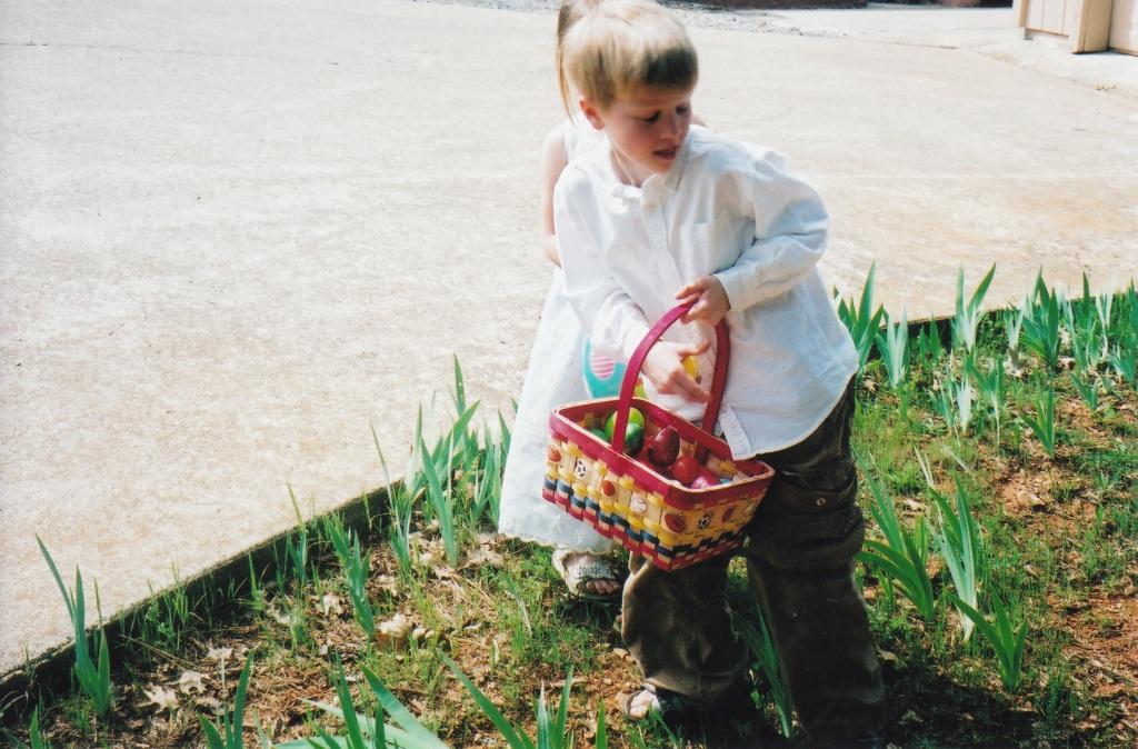 After Wyatt and Carson watered the garden, the Easter egg hunt began: