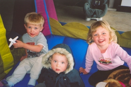 Carson and Austin bouncing with Mikayla; Resting with Lady