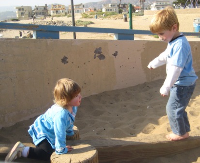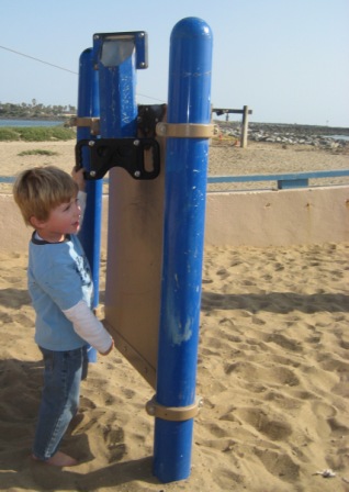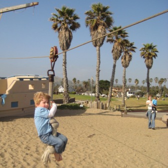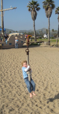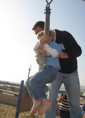 Austin enjoyed the playground at the beach too. The fun really began when Uncle Joe helped him onto the zip line: