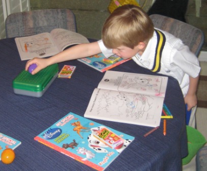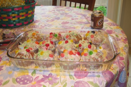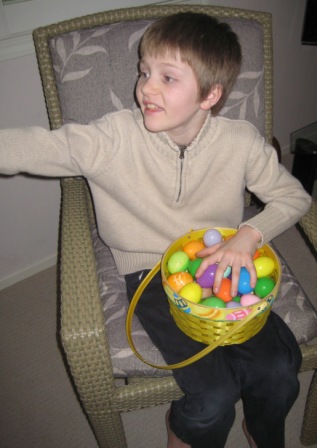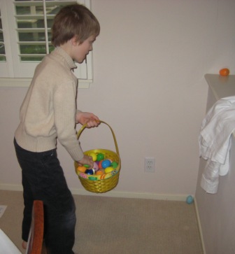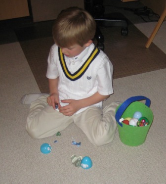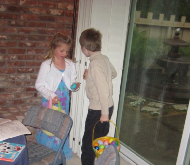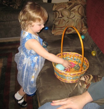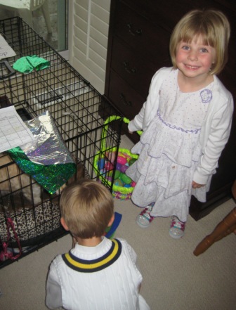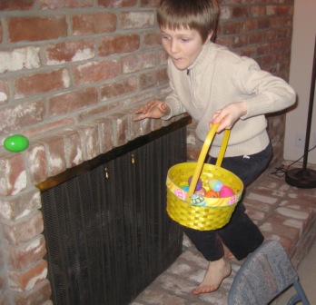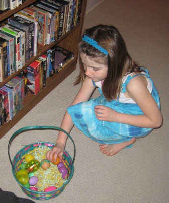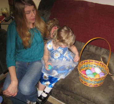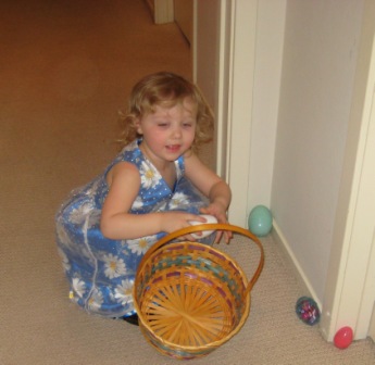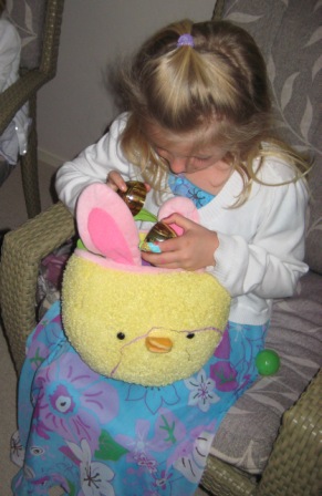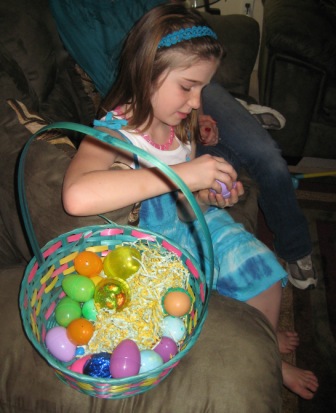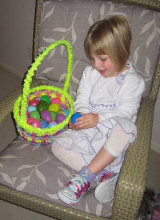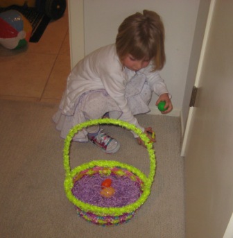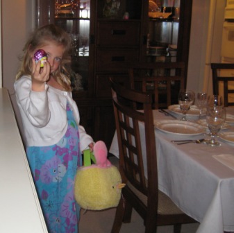 They must have peaked at Aunt Maggie’s cupcakes and checked out snacks in the kitchen. They knew that the Easter Bunny was soon to hide Easter eggs in all the rooms. Sienna escaped from the bedroom first to fill her basket…