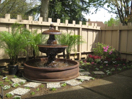 Sunshine highlighted the new garden fountain a few days before Easter…