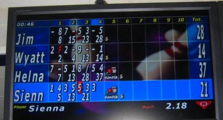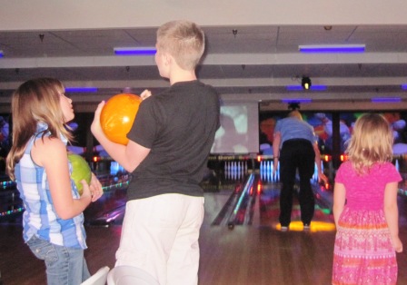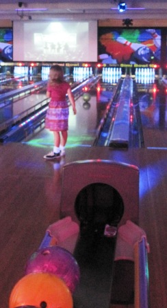 While Emma slept, the rest of the grandkids went bowling with Grandma and Grandpa: